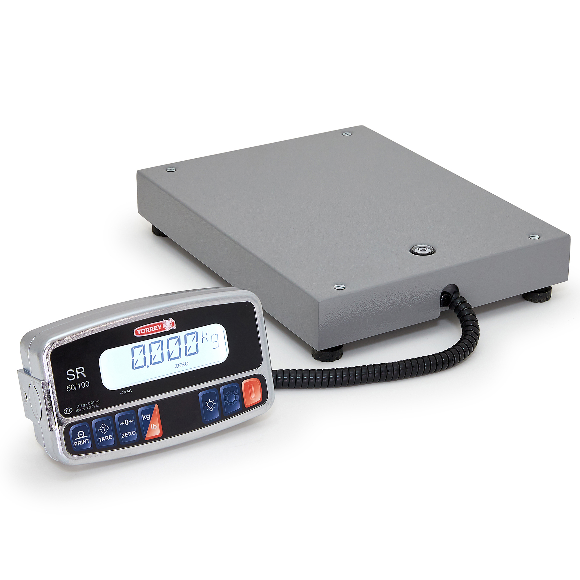 Báscula de tamaño práctico y compacto con diseño robusto, ideal para recibo de paquetería, mensajería y mercancía en bodegas. Cuenta con cable tipo telefónico retráctil para fácil colocación del módulo.